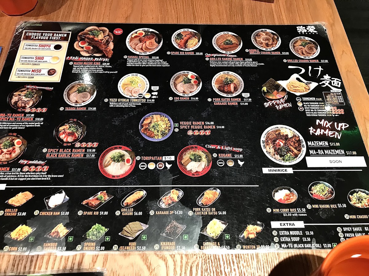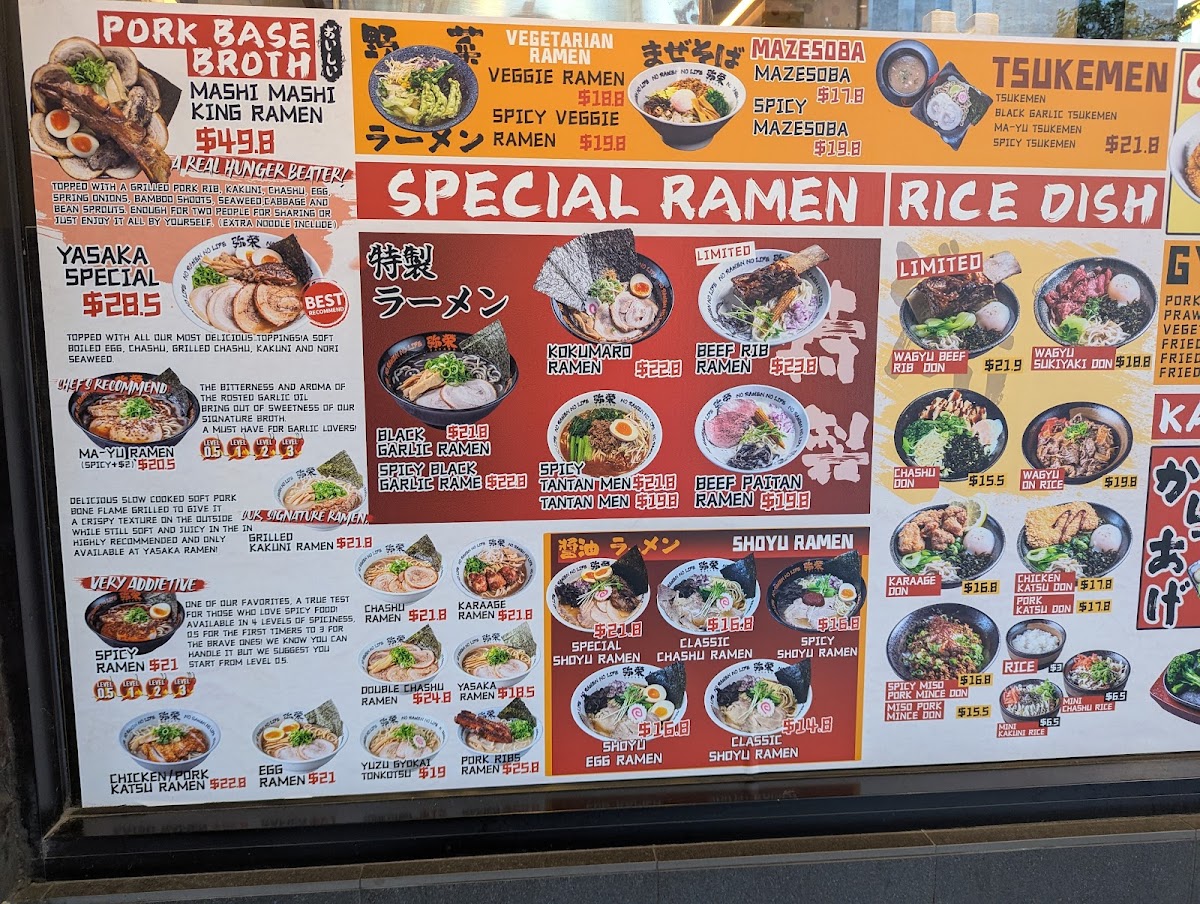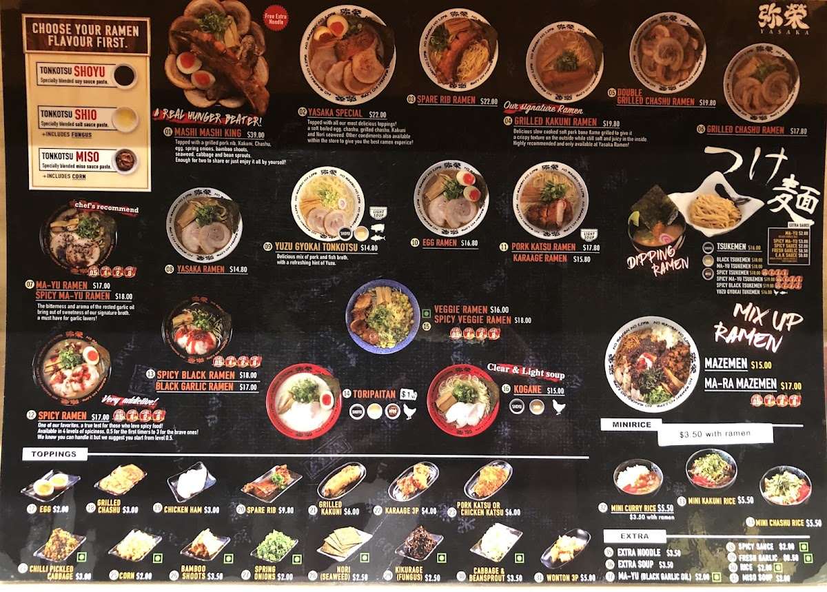 Yasaka Ramen, where we invite you to embark on a delightful culinary journey at our cozy spot located at 126 Liverpool St, Sydney NSW 2000, Australia. Our menu celebrates the rich and vibrant flavors of Japan, featuring specialty bowls that are sure to tantalize your taste buds and warm your soul. Dive into our Spicy MA-Yu Ramen or indulge in the tender, melt-in-your-mouth goodness of our Grilled Kakuni Ramen. For those seeking lighter options, our Vegetarian Ramen and Dipping Ramen provide fresh and exciting flavors. Don’t miss the crowd favorites like our Pork Gyoza and Octopus Karaage, perfect as delectable sides. Whether you're a ramen connoisseur or a newcomer to this savory delight, Yasaka Ramen offers something for everyone, including unique twists like our Black Garlic Ramen and the zesty Light Soup Yuzu Gyokai Tonkotsu. Come and experience a bowl that speaks to your cravings!